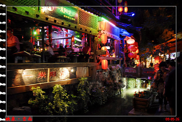 Vincent 吃過晚餐後傍晚七點多再度來大研古城區,豔陽暑氣漸退去,酒吧也開始熱鬧起來!
