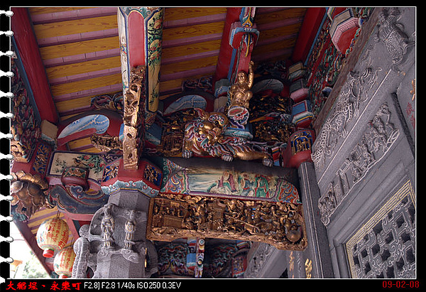 前簷屋頂下方獅座、員光、斗拱、托木、吊桶、都是匠師雕刻的精華。