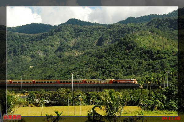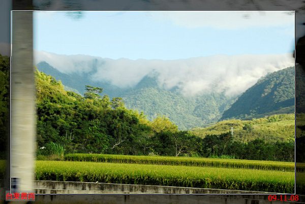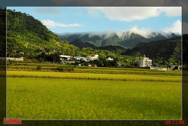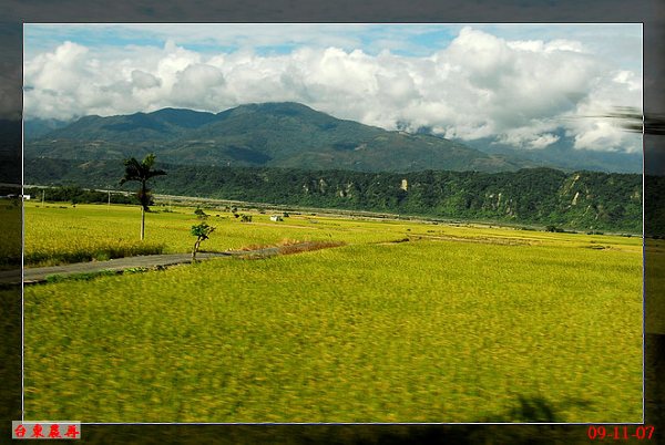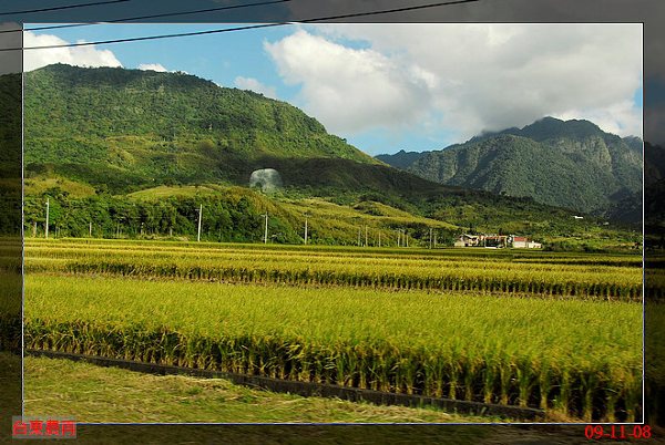 花東縱谷,是台灣東部縱谷地形景觀,夾於中央山脈和海岸山脈之間,花東縱谷南北長約180公里,東西寬2―7公里,面積約1000平方公里,海拔50-250公尺不等。花東縱谷沿省道台九線而行,貫通花蓮、台東兩縣的精華地帶,長達158公里的綠色走廊,盡是一片綠意和綿延的秀麗山脈,沿路並有東部幹線鐵路相隨,在秋收稻穗金黃大地,以及油菜花盛開時期,其景色令人讚嘆與驚喜。