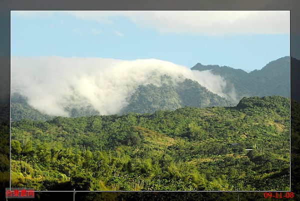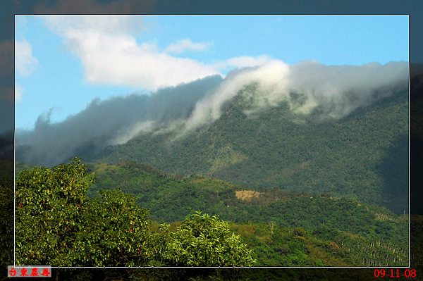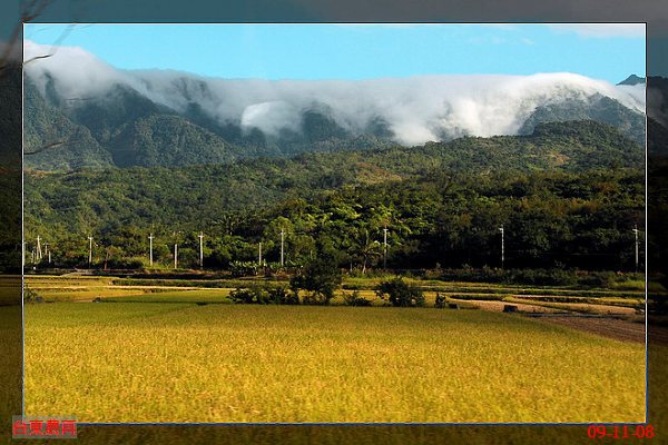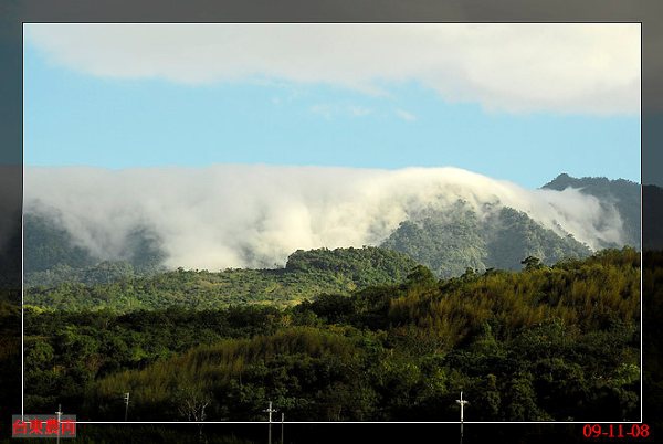 午後三點左右海岸山脈受溫差大而形成「雲瀑」景觀,有如白雪覆蓋山頭