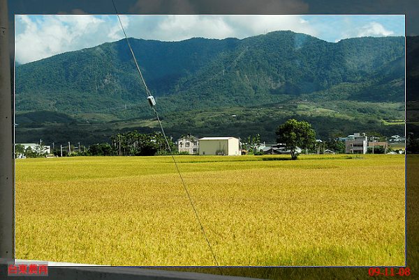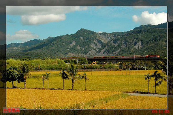 花東鐵路穿越花東縱谷,與秋收金黃大地分外美麗
