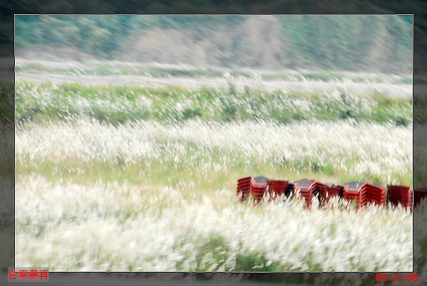 Vincent 睡眠一覺醒來,行車已過花蓮溪河床的白白甜根子草!