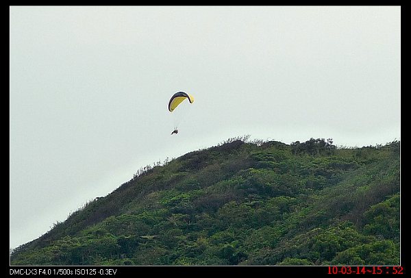 萬里的山區是飛行傘的練習區域,在翡翠灣沙灘降落