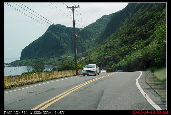 過了此彎曲路進入台北縣的萬里鄉,後方的翡翠灣渡假風情!