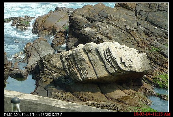 這是北海岸知名的奇石:「拳頭石」…這樣子看不太出來?