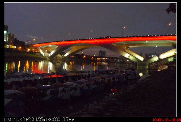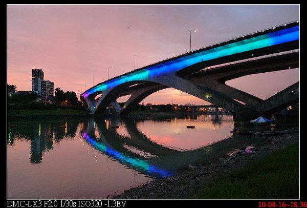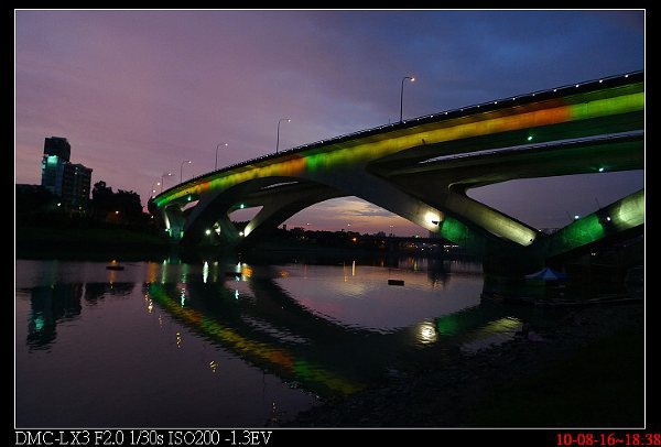 七彩燈光不間斷的變化,點綴著〔碧潭高架橋〕旖旎的光影!